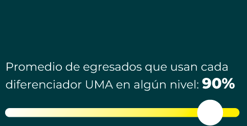 De acuerdo con Daniela, definir estos diferenciadores permitiría responder preguntas como: “¿Cuántos egresados realmente tienen esos diferenciadores y en qué nivel? ¿Cuántos los sostienen en el tiempo? ¿Estos son los criterios necesarios para lograr el propósito de la UMA?” Esto ofrecería información relevante para fortalecer la eficacia del modelo educativo de la UMA.