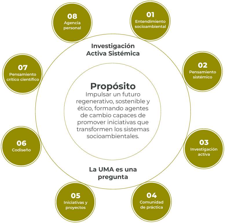 Impulsar un futuro regenerativo, sostenible y ético, formando agentes de cambio capaces de promover iniciativas que transformen los sistemas socioambientales.