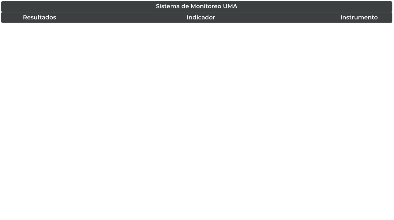 De esta Teoría de Cambio se identifican los indicadores que nos ayudarán a saber si nos estamos acercando al propósito de la UMA.