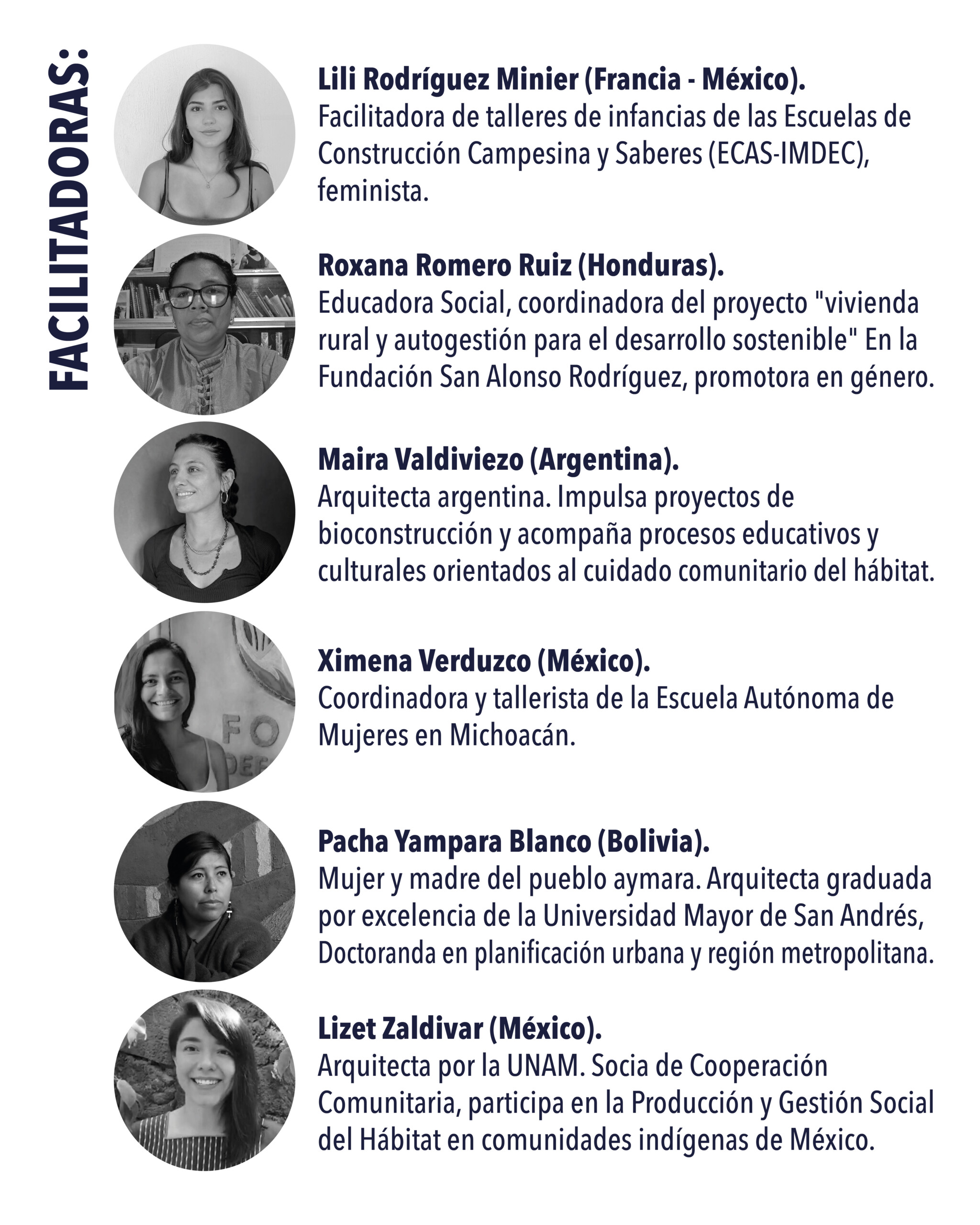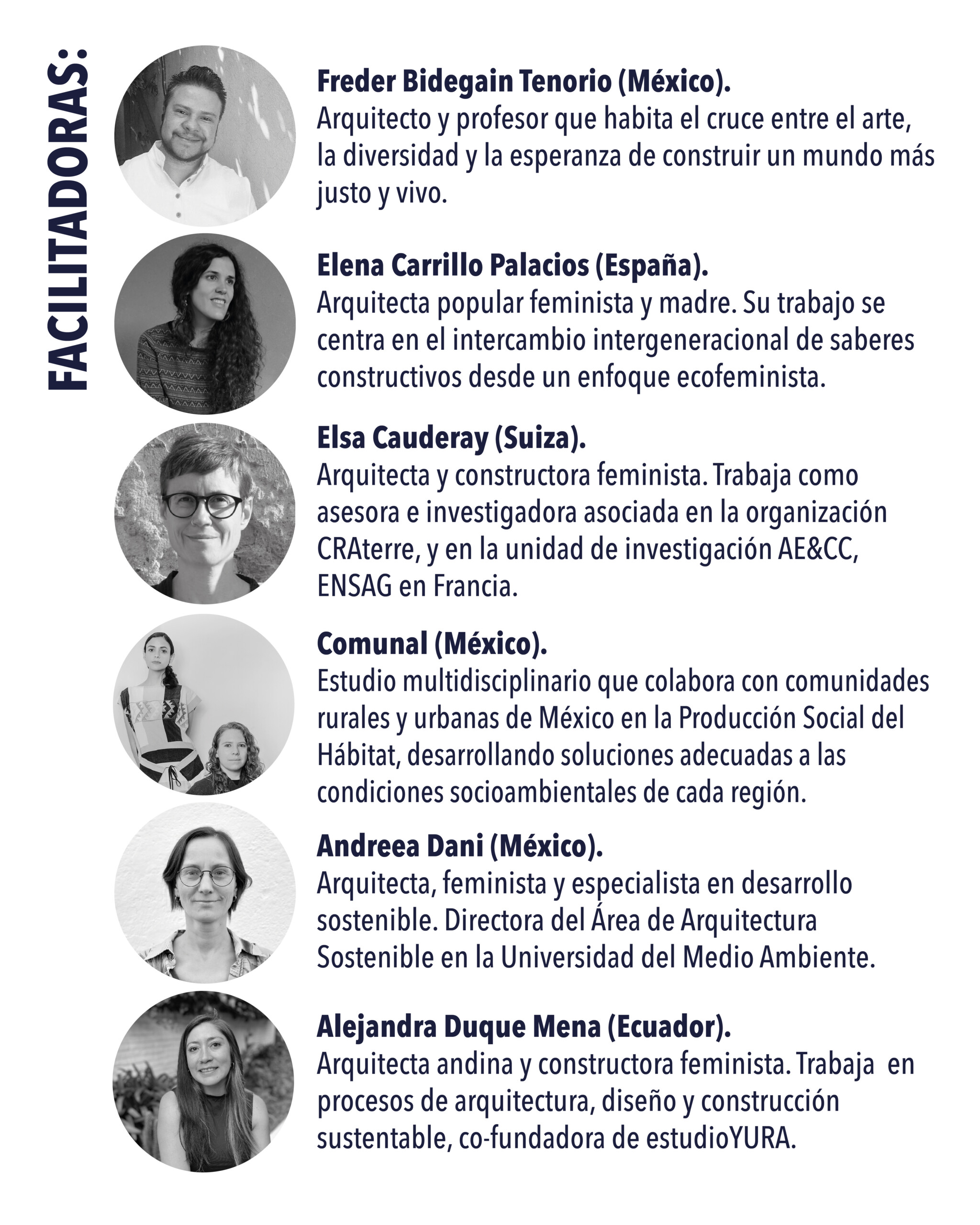 Conversatorios y conferencias con voces diversas de México y América Latina que compartirán sus experiencias sobre hábitat, género, cuidados y tejidos comunitarios.