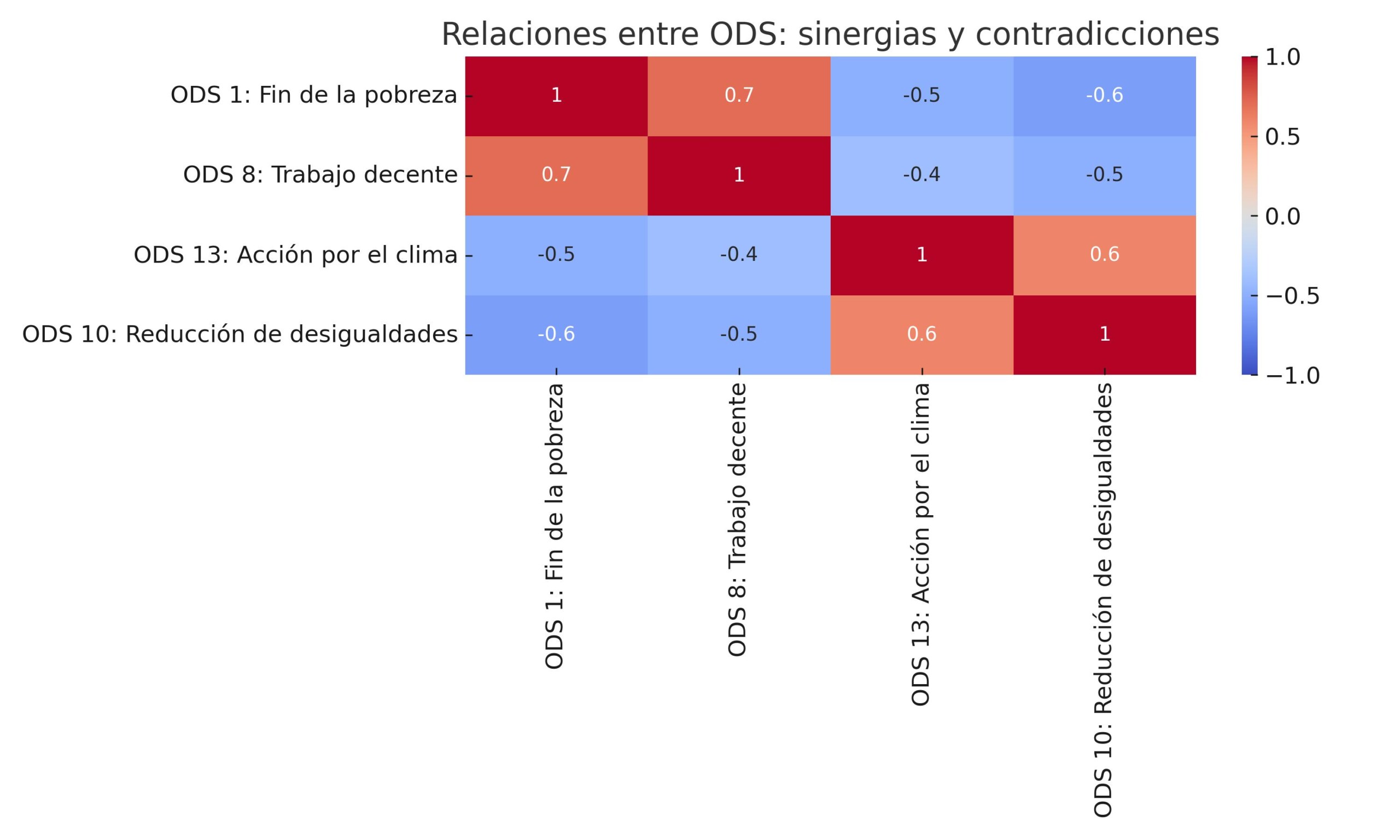 - Descripción: Gráfico que muestra la interdependencia entre los ODS: cómo el progreso en unos puede ir en contra de otros.